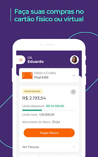 Além do cartão físico, você também pode utilizar o seu cartão virtual para fazer compras com segurança em sites e aplicativos. Acompanhe todas suas transações do cartão de crédito físico e virtual direto pelo app da sua conta digital!
